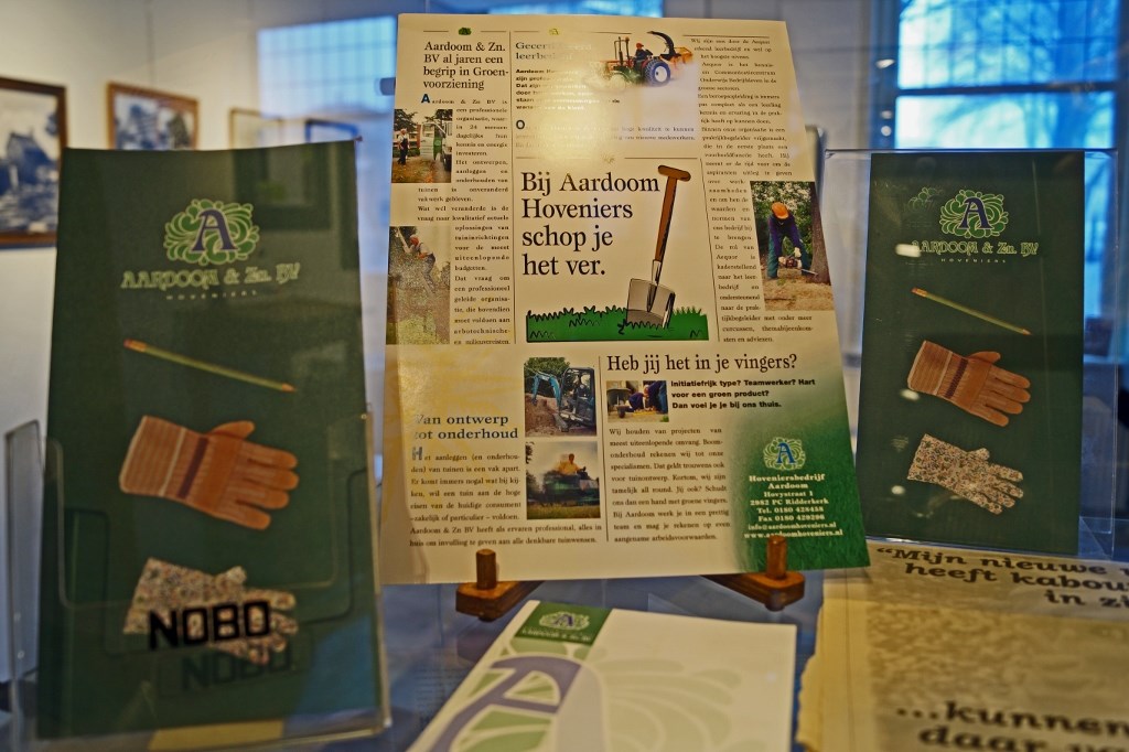 De geschiedenis van de firma Aardoom zal te zien zijn in de vorm van foto's, boeken en gereedschappen. In de vitrines zullen ook diverse oude boeken over het vak van hovenier te zien zijn.
